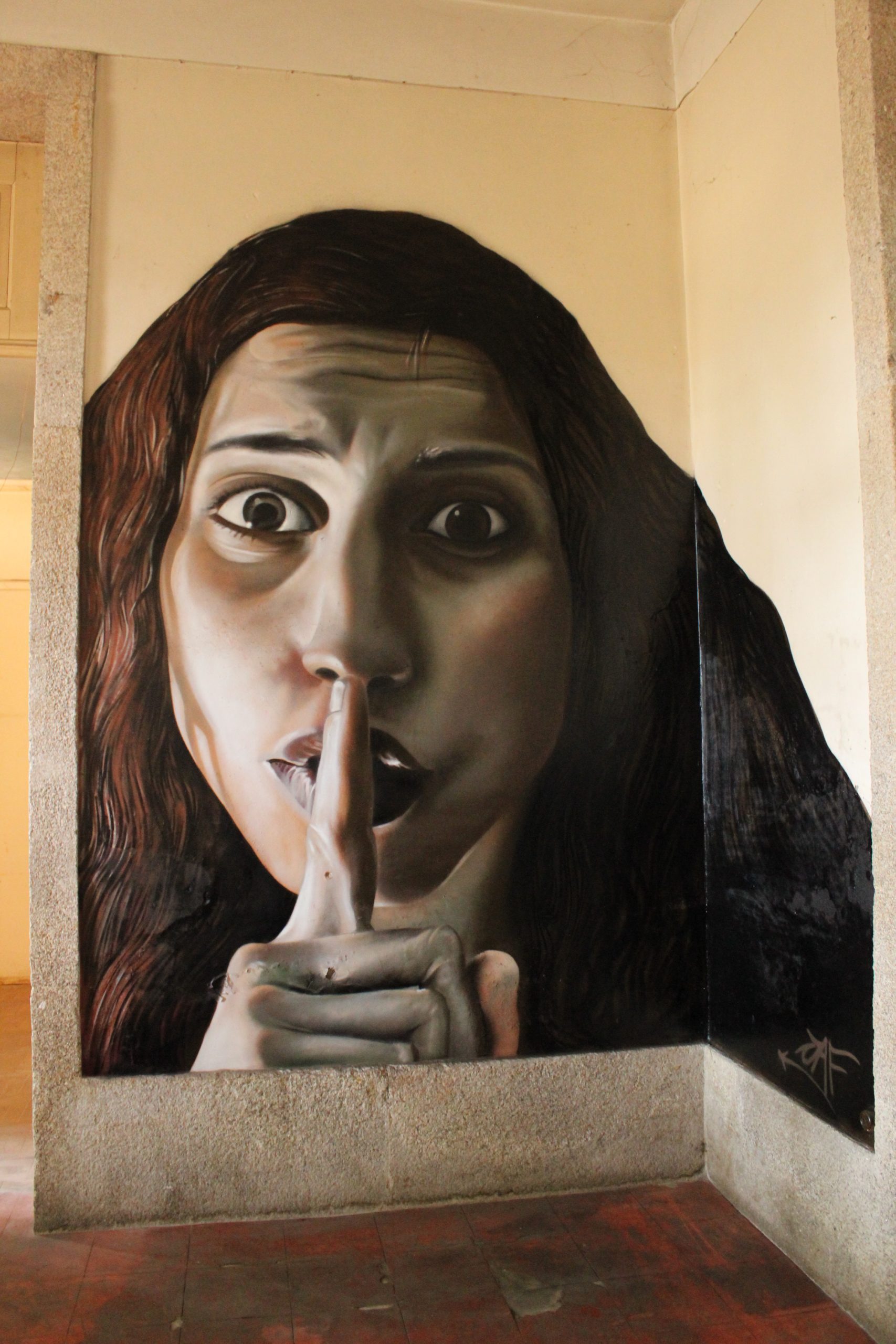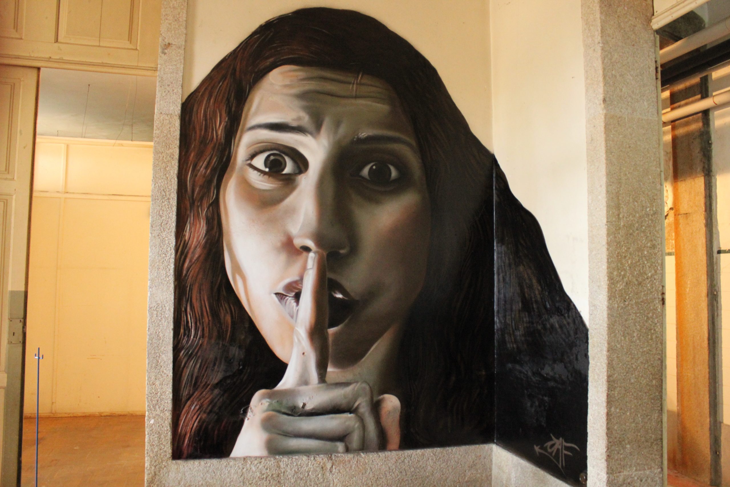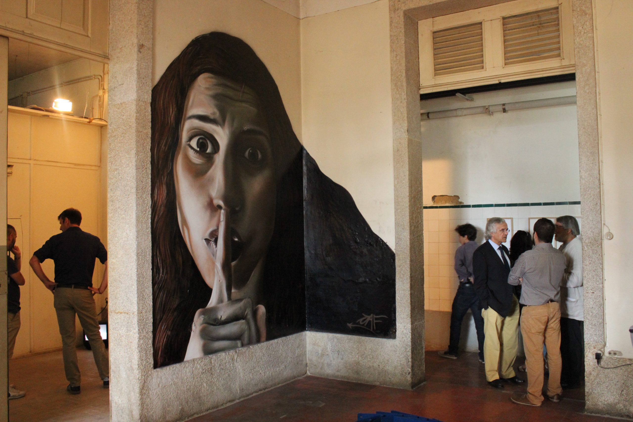 Pintura a spray realizada no interior das antigas enfermarias femininas do Hospital Psiquiátrico Conde Ferreira do Porto