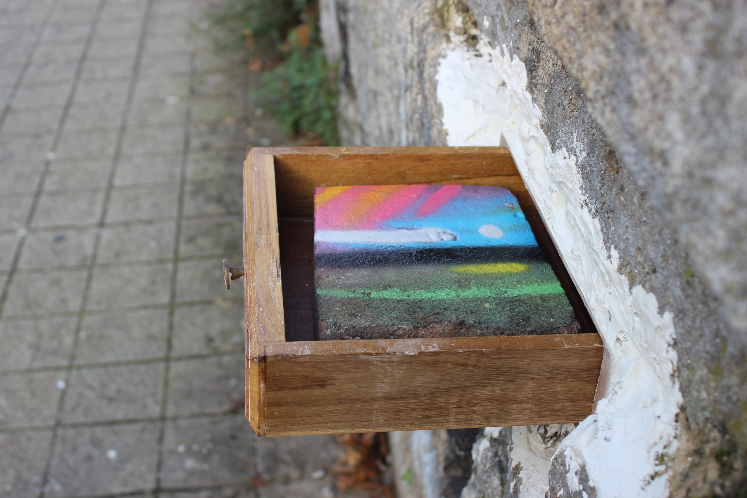 O projeto partiu da ideia de levar ao espaço público uma gaveta de mesinha de cabeceira, que por norma está associado a algo privado e íntimo e, no seu interior, colocar uma parte de um graffiti.