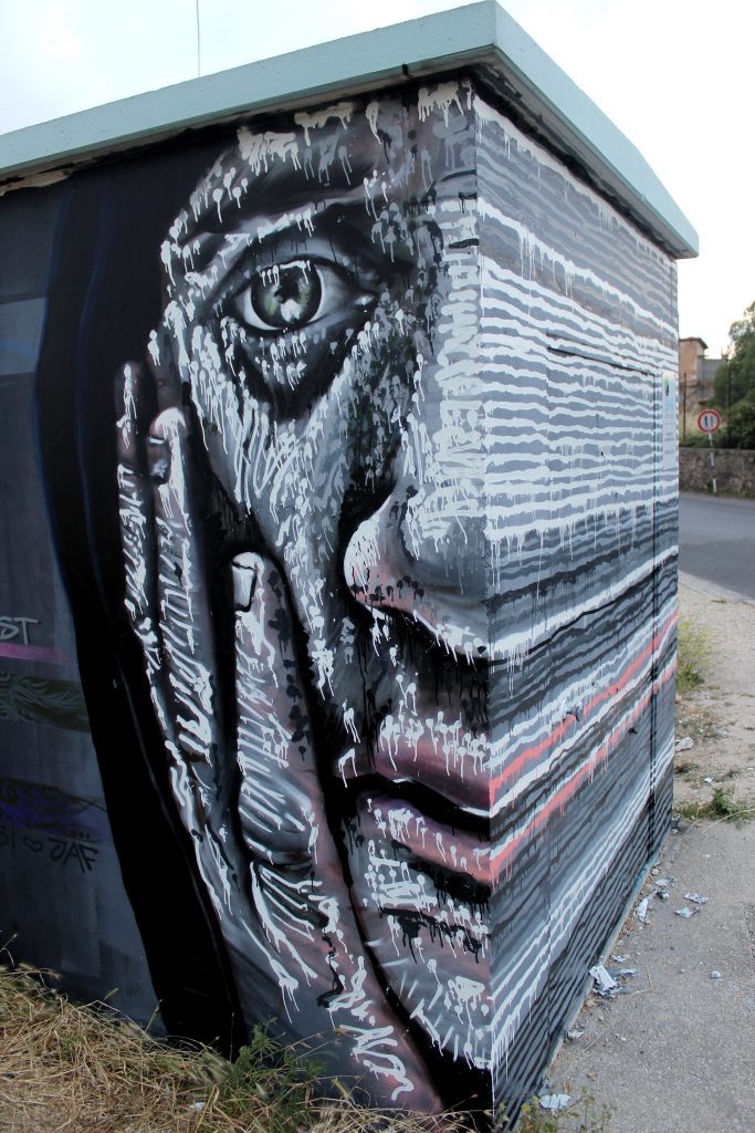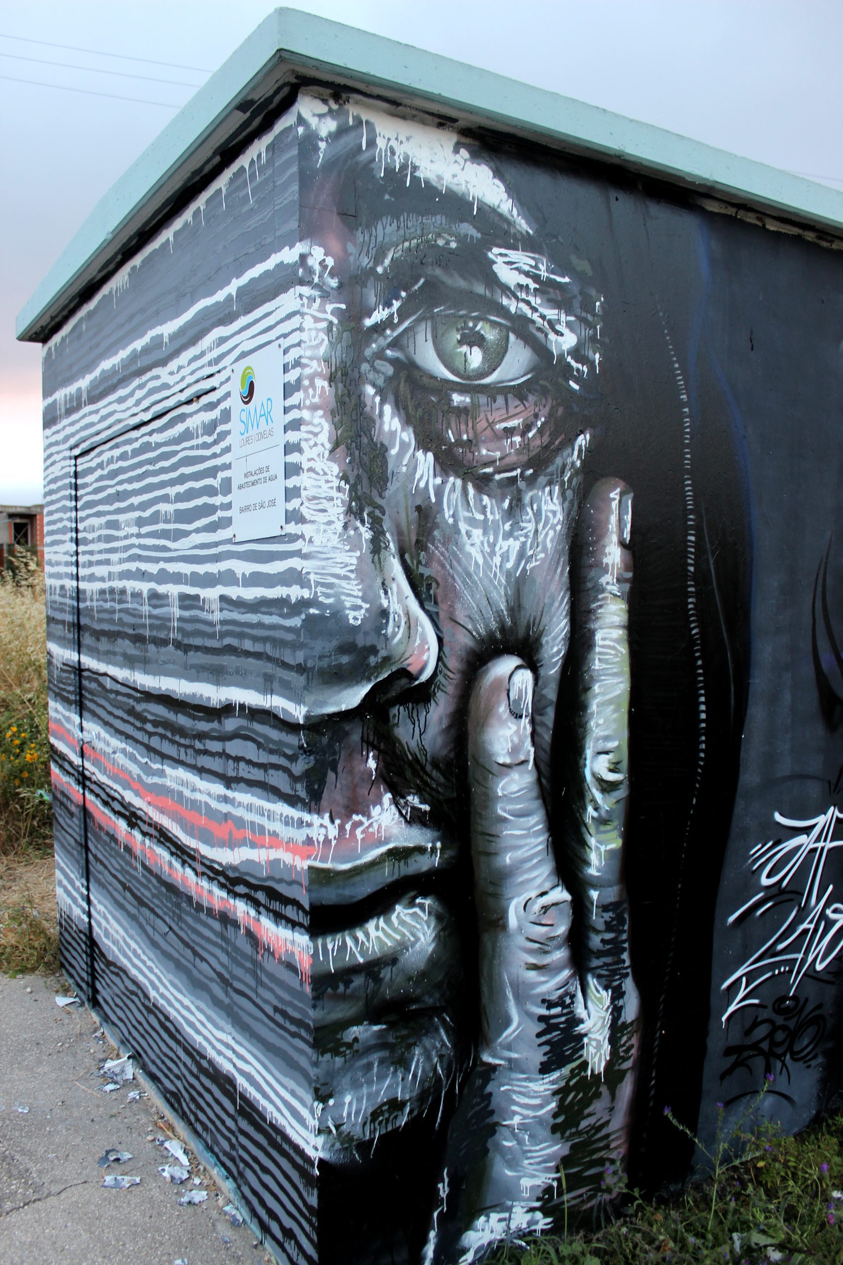 Graffiti executado em 2016 no festival de Street Art “Loures Arte Pública”, no bairro de S. José, Camarate