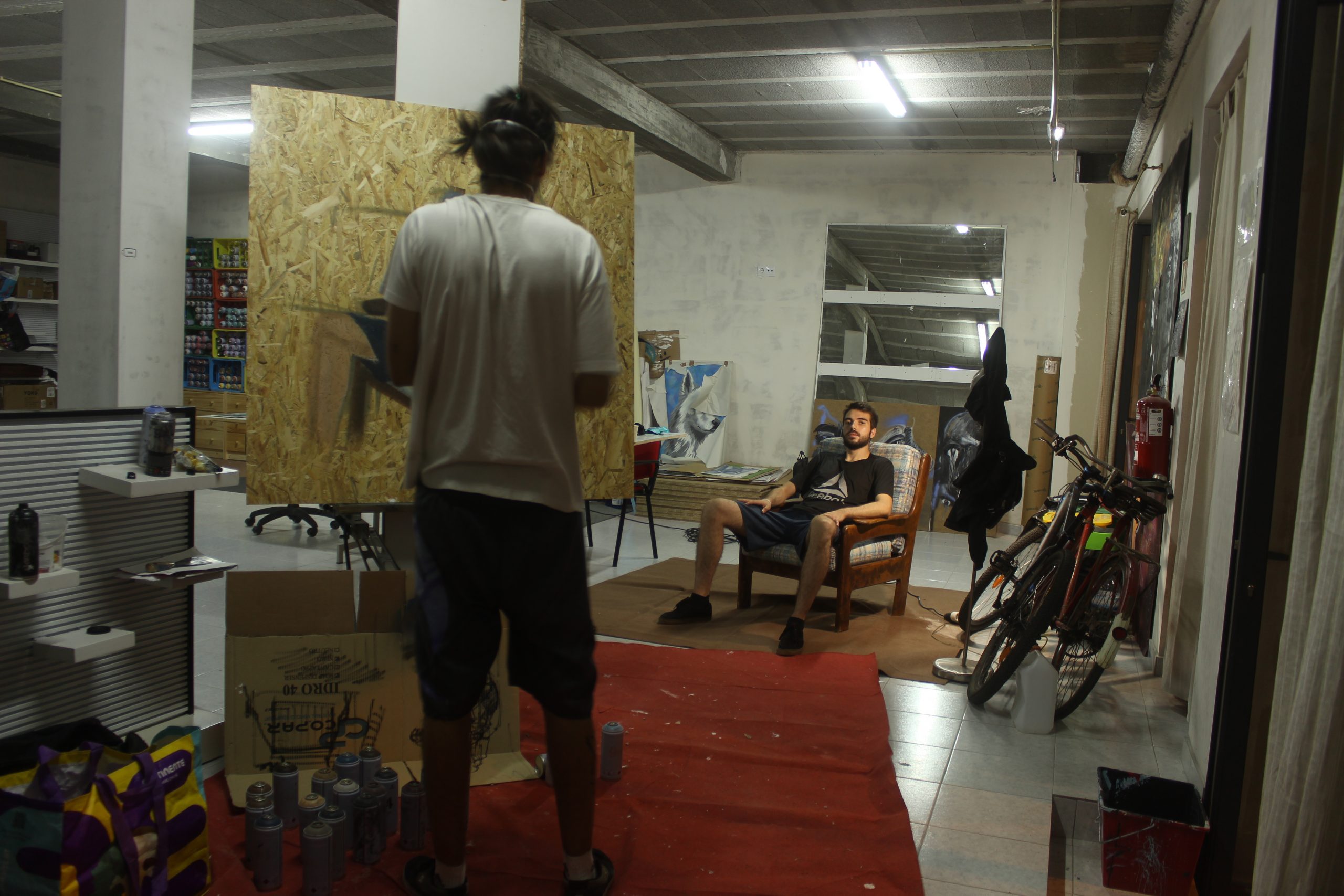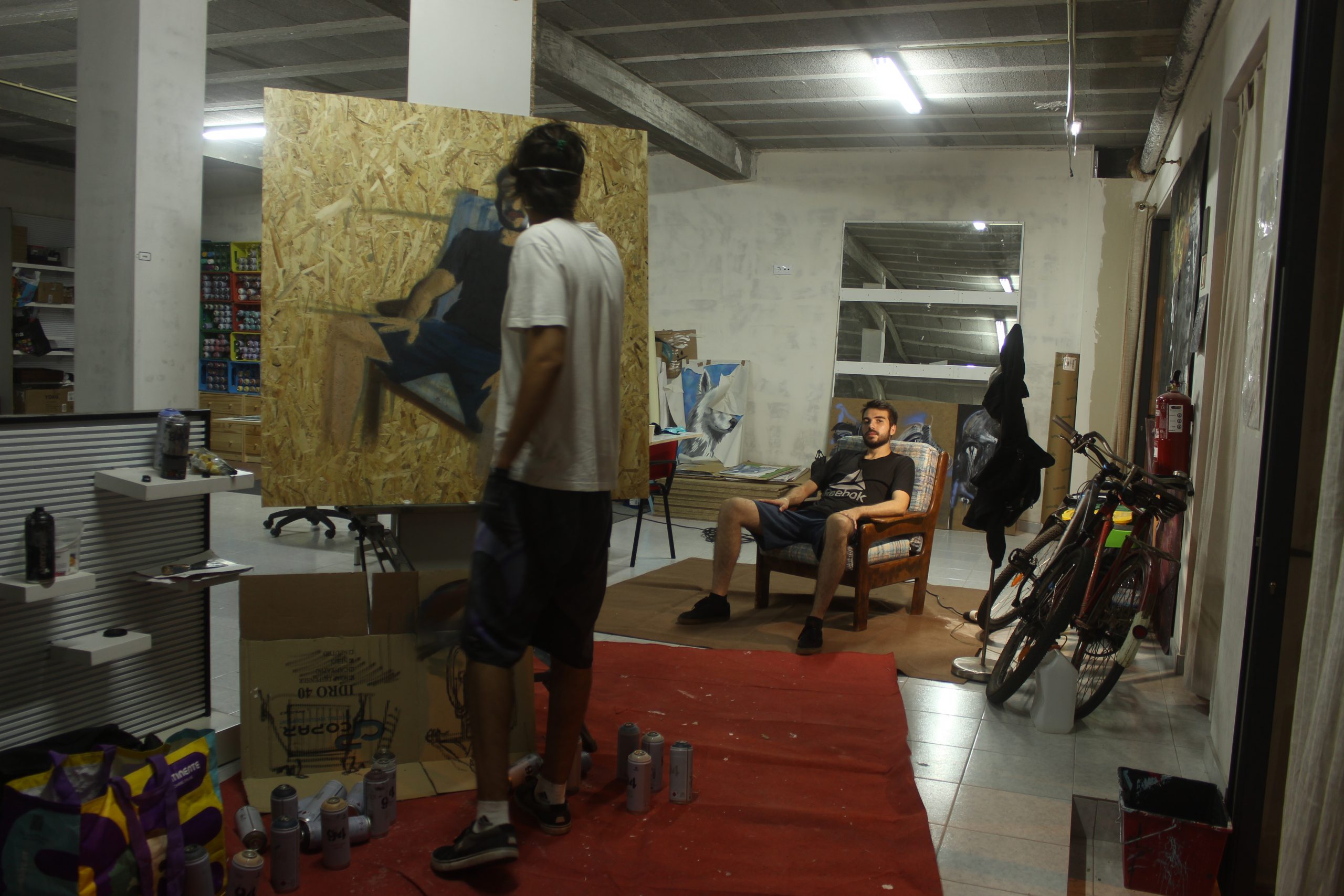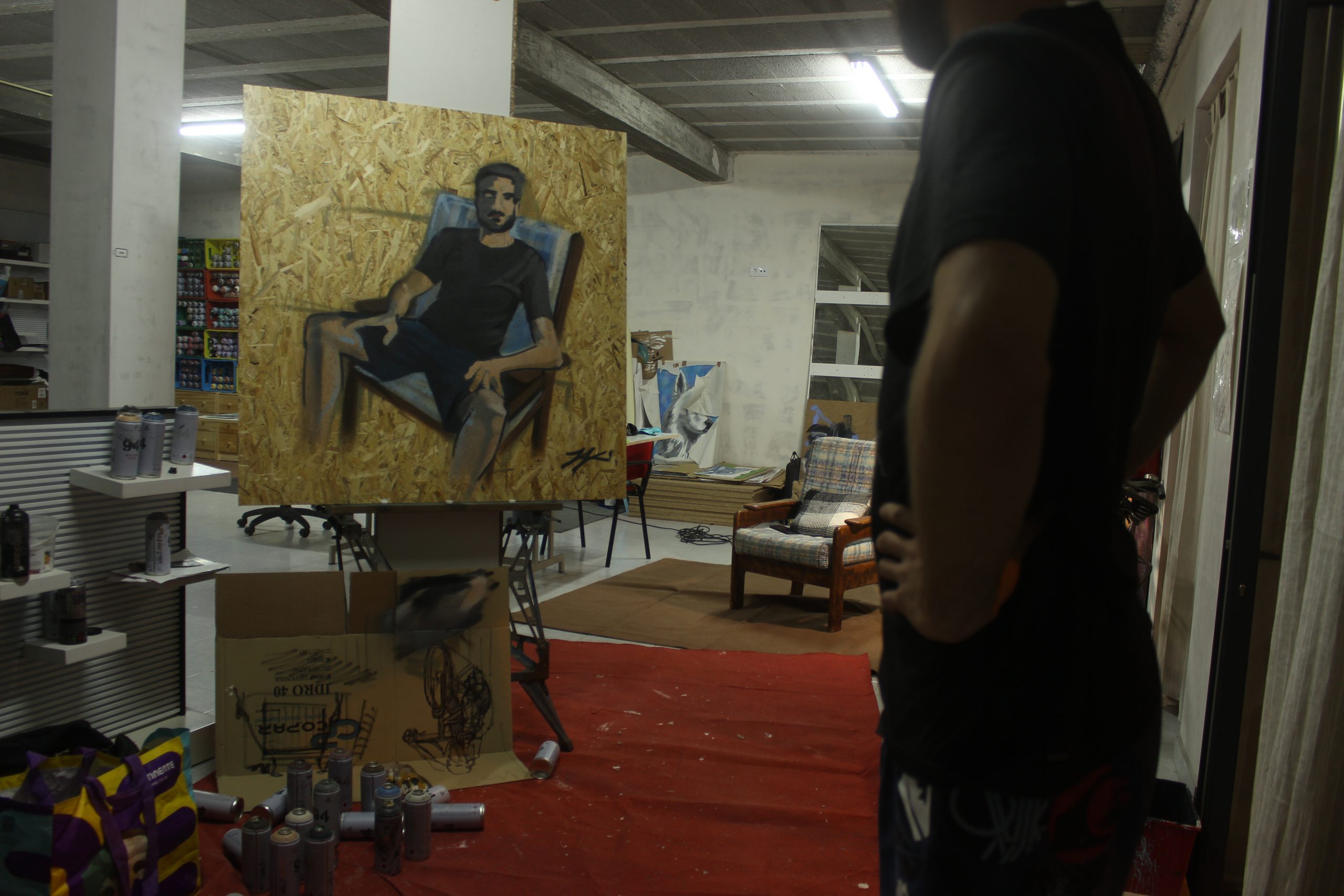 Primeira experiência de retrato à vista realizado apenas com sprays sobre placa de osb.