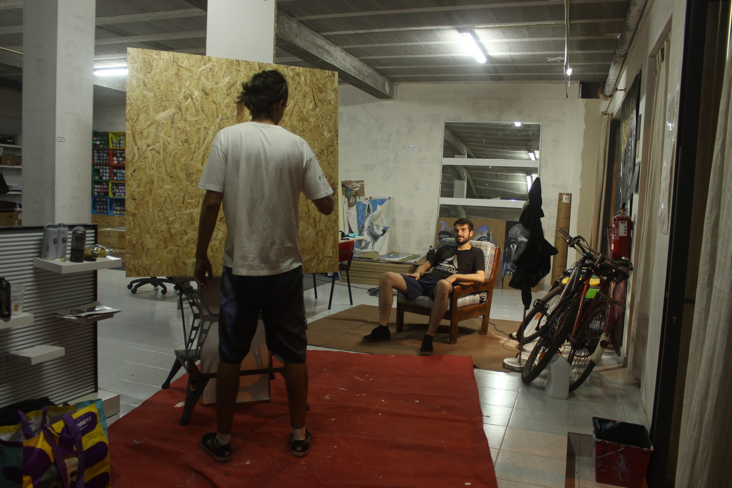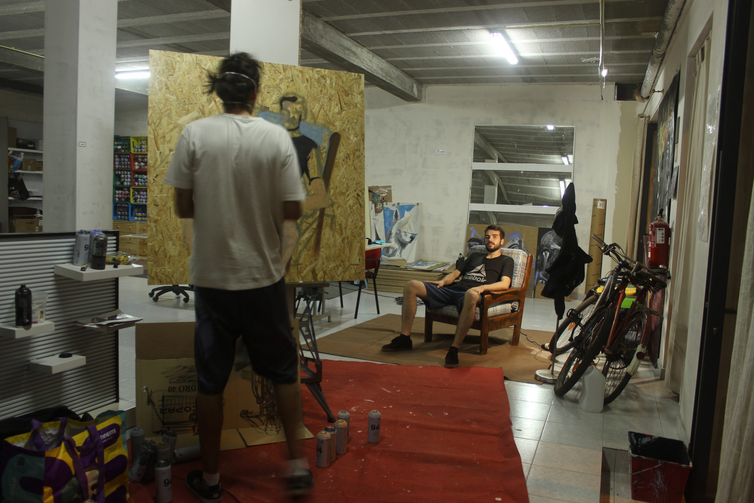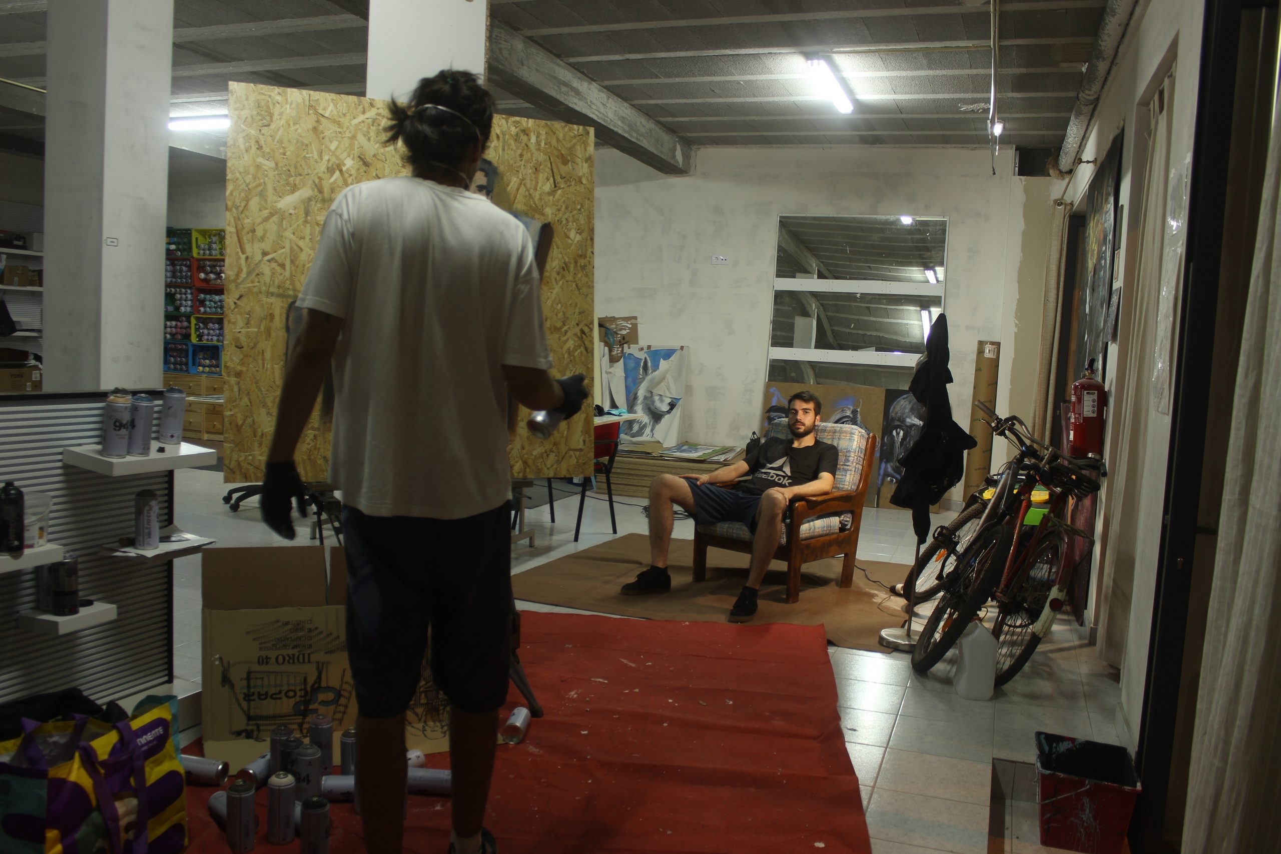Primeira experiência de retrato à vista realizado apenas com sprays sobre placa de osb.